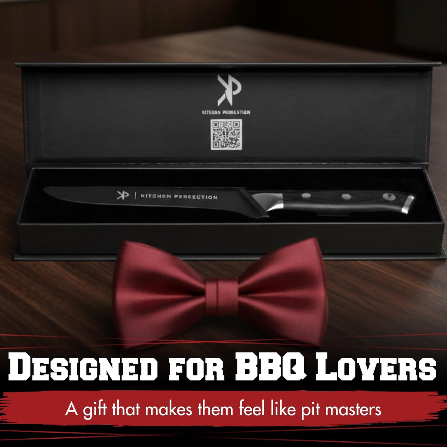INCLUDES BONUS RECIPE EBOOKS & GUIDES, PERFECT GIFT FOR GRILL MASTERS – Surprise the BBQ lover in your life with the ultimate smoker & grill accessory. Each brisket knife comes with exclusive bonuses: A sheath, “Great Food from the Grill” and “Healthy Salads” recipe eBooks, plus a Meat Temperature Guide and Smoking Cheat Sheet. Ideal for Father’s Day, holidays, birthdays, or anyone who loves outdoor cooking.