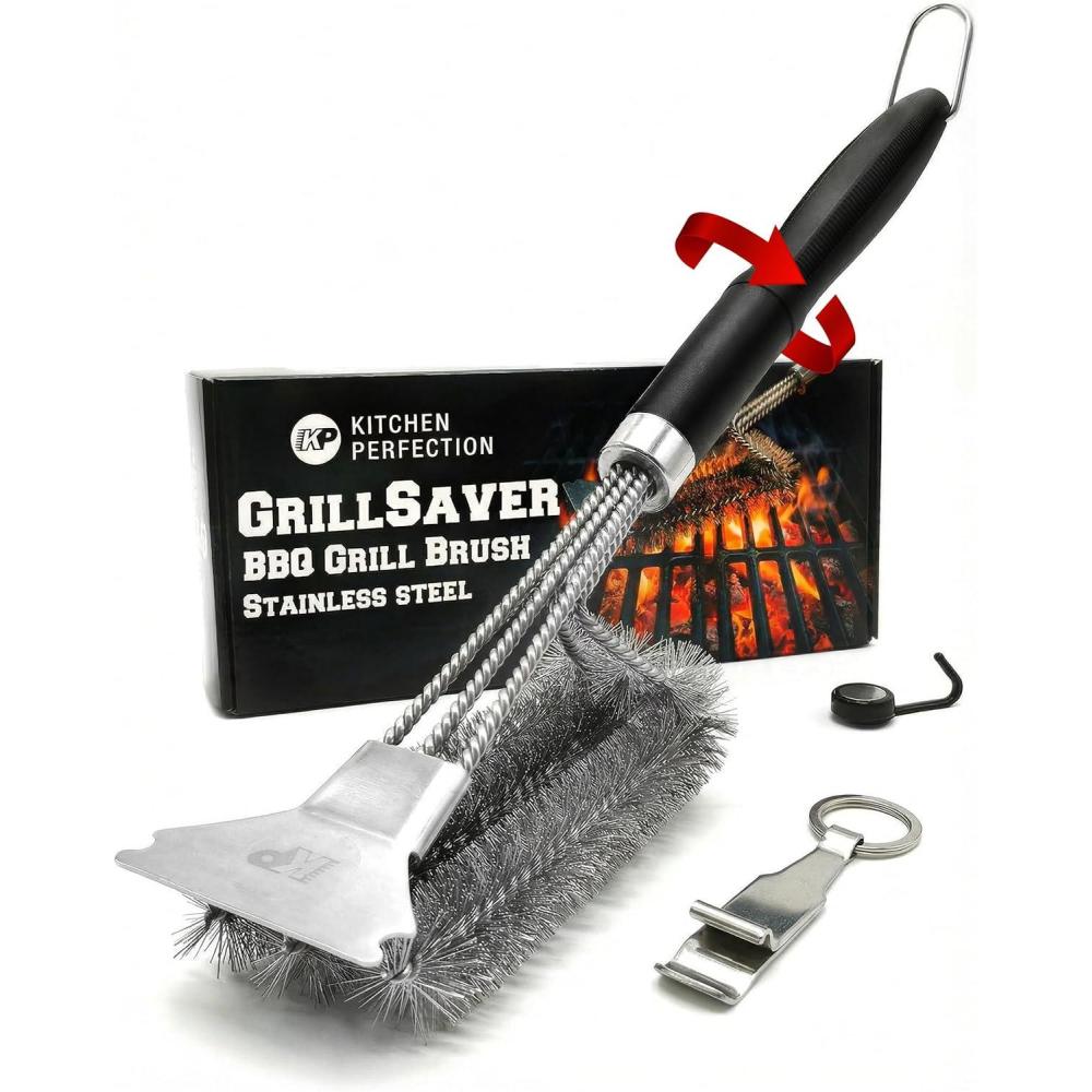 Be the first to review “KITCHEN PERFECTION Brass GrillSaver – Safe BBQ Grill Brush with Replaceable Cleaning Head -Heavy-Duty Grill Cleaner w/Scraper for Porcelain & Ceramic Grates, Includes Magnetic Hanger & Bottle Opener(1. Grillsaver – Stainless Steel)”