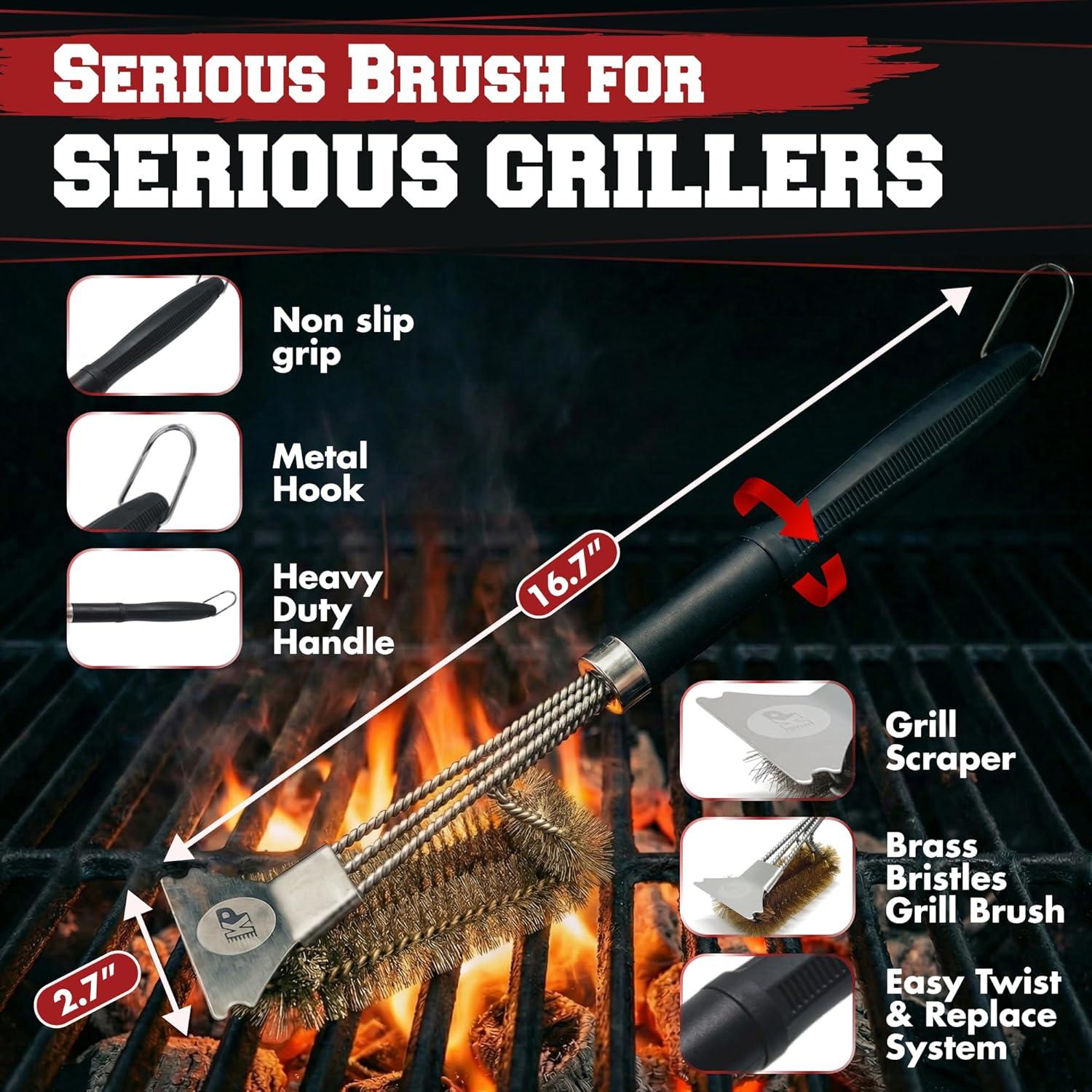 BUILT TOUGH FOR GRILL MASTERS – From the rugged non-slip handle to the high-strength scraper and rust-proof wire bristles, this brush is built to last season after season. At 17 inches long, it gives you max leverage while keeping your hands safely away from the heat.